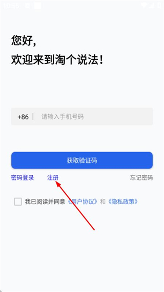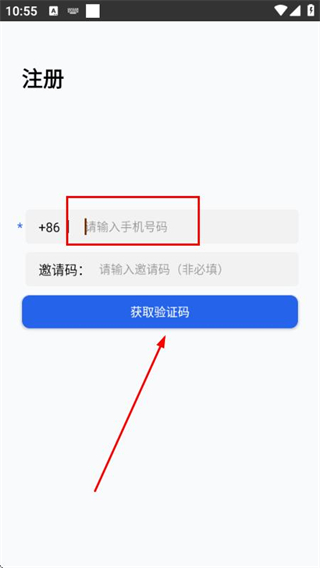 2、在注冊(cè)賬號(hào)頁面手機(jī)號(hào)碼輸入框填寫號(hào)碼后,點(diǎn)擊獲取驗(yàn)證碼按鈕。
