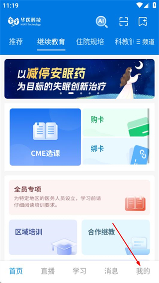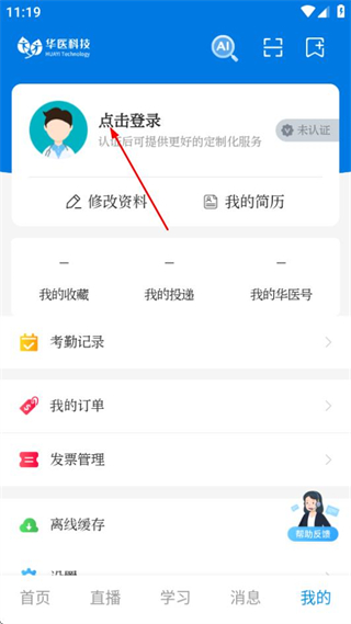 1、在掌上華醫(yī)的首頁,點(diǎn)擊底部的我的選項(xiàng),進(jìn)入個(gè)人中心頁面。
