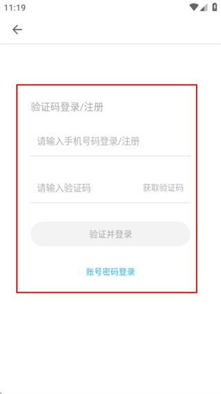 4、在驗(yàn)證碼登錄注冊(cè)頁面,填寫信息后,點(diǎn)擊登錄完成賬號(hào)登錄。