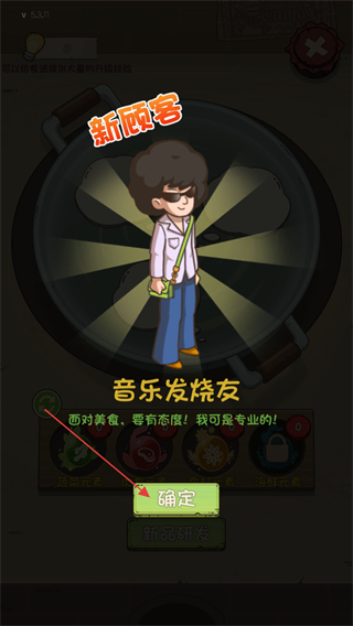 4、隨著新菜品的研發(fā)會出現(xiàn)新顧客音樂發(fā)燒友,點擊確定按鈕完成該顧客的解鎖,后續(xù)可接待這類顧客以增加面館的營收來源。