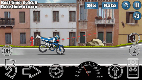 3、躲避賽道障礙如石塊,繼續(xù)操控摩托做出特技,推進(jìn)關(guān)卡進(jìn)度。