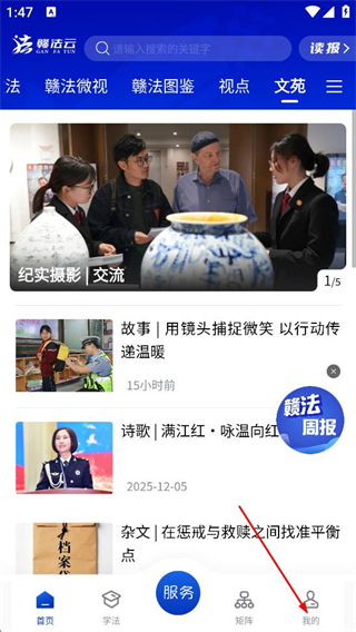 1、在贛法云首頁(yè),點(diǎn)擊底部導(dǎo)航欄的我的,進(jìn)入個(gè)人頁(yè)面。