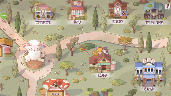 2、在小鎮(zhèn)地圖界面找到標(biāo)注為Bistro的店鋪,點(diǎn)擊進(jìn)入該場所,以此進(jìn)入對應(yīng)的經(jīng)營場景準(zhǔn)備開展相關(guān)任務(wù)。