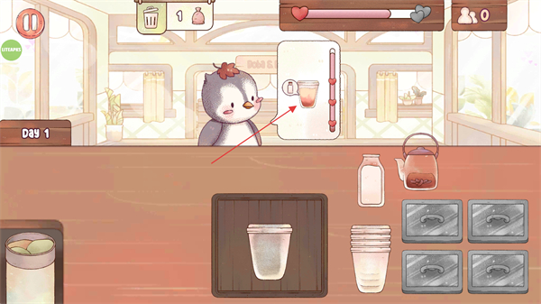 4、在第一天的經(jīng)營場景中,根據(jù)顧客需求的飲品樣式,準(zhǔn)備對應(yīng)的制作材料來完成該飲品,以此滿足顧客需求推進(jìn)經(jīng)營流程。