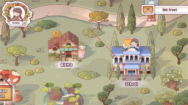 1、在小鎮(zhèn)地圖界面找到標注的School建筑,點擊進入該場所,以此開啟校內(nèi)相關(guān)的游戲關(guān)卡。