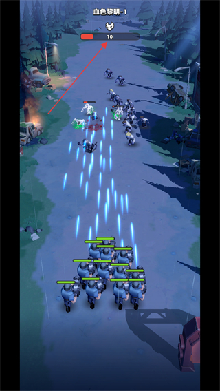 3、血色黎明-1關(guān)卡的戰(zhàn)斗后期,己方部隊(duì)持續(xù)攻擊剩余敵人,上方進(jìn)度條對(duì)應(yīng)敵方剩余數(shù)量的變化,逐步滿(mǎn)足關(guān)卡的勝利條件。