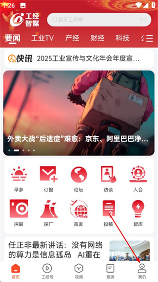 1、在工經(jīng)智媒的首頁(yè),點(diǎn)擊底部的我的選項(xiàng),進(jìn)入個(gè)人中心頁(yè)面。
