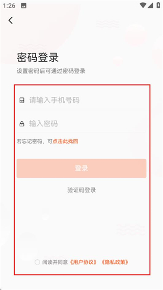 4、在密碼登錄頁(yè)面,填寫信息并勾選協(xié)議后,點(diǎn)擊登錄完成賬號(hào)登錄。