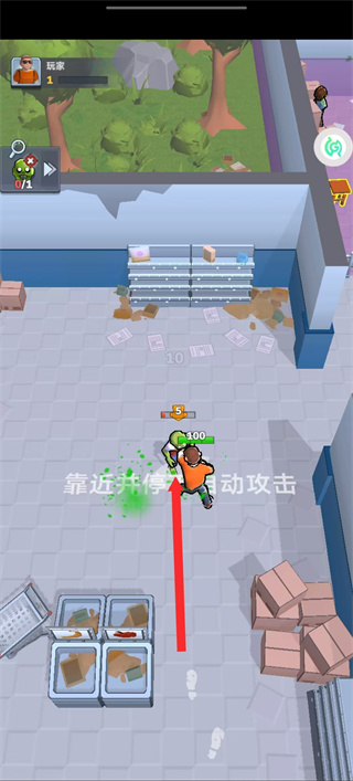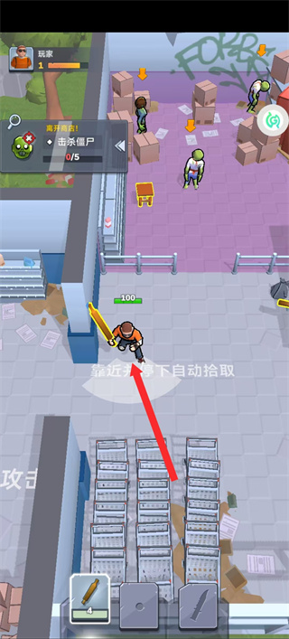 2、移動(dòng)角色靠近敵方目標(biāo)如僵尸,可自動(dòng)觸發(fā)攻擊操作,擊敗目標(biāo)后獲取對(duì)應(yīng)的資源如金幣,提升角色的生存資源儲(chǔ)備。