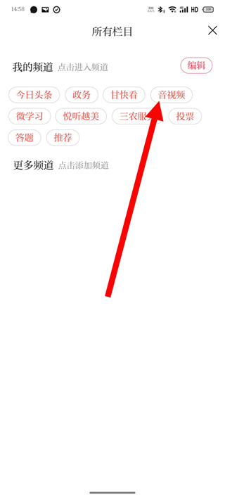 2、在所有欄目頁面,點(diǎn)擊選擇音視頻頻道,進(jìn)入對應(yīng)內(nèi)容列表頁。