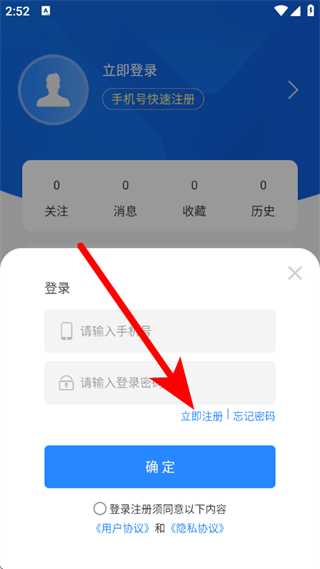 3、在登錄界面,點(diǎn)擊立即注冊,切換至快速注冊頁面。
