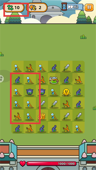 1、移動(dòng)游戲場(chǎng)景內(nèi)相同的道具,三個(gè)及以上即可合成士兵。