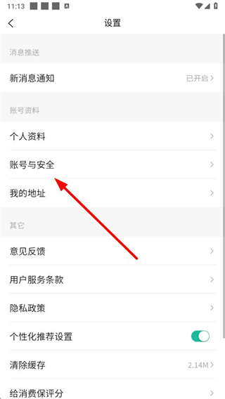 3、在設(shè)置頁面點(diǎn)擊賬號(hào)與安全選項(xiàng),進(jìn)入賬號(hào)與安全頁面。