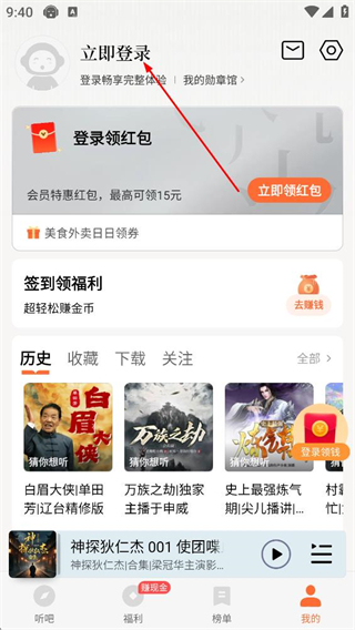 2、在我的頁(yè)面,點(diǎn)擊上方的立即登錄選項(xiàng),進(jìn)入登錄選擇界面。