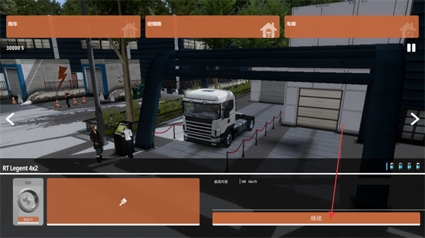 3、處于經(jīng)銷(xiāo)商與車(chē)庫(kù)界面,可以購(gòu)買(mǎi)選擇車(chē)輛進(jìn)行使用,點(diǎn)擊界面中的繼續(xù)按鈕可進(jìn)入后續(xù)的游戲流程。