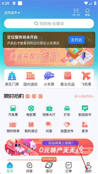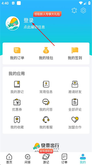1、在快票出行首頁(yè),點(diǎn)擊底部我的,進(jìn)入個(gè)人中心頁(yè)面。