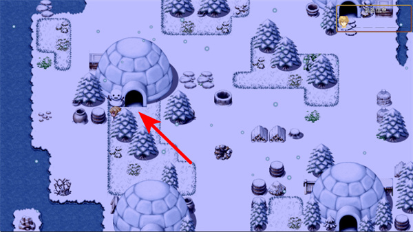 3、進(jìn)入雪地場景后,操控角色移動至冰屋位置,這是推進(jìn)場景探索的核心操作,靠近冰屋后可觸發(fā)對應(yīng)的互動內(nèi)容,解鎖區(qū)域獲取場景道具。