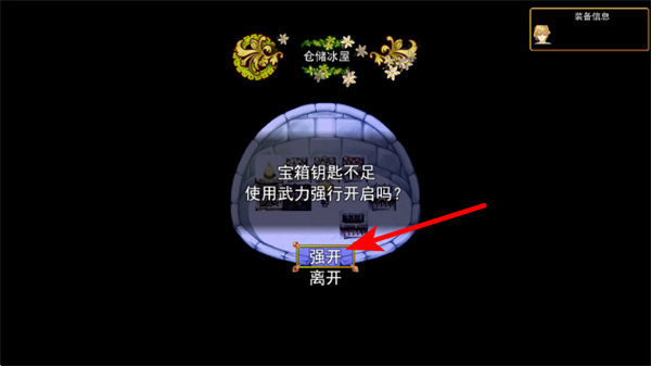 1、在寶箱界面出現(xiàn)鑰匙不足的提示時,點擊強(qiáng)開按鈕,獲取寶箱資源關(guān)鍵操作,選擇后會以武力方式開啟寶箱,獲取道具獎勵,推進(jìn)積累。