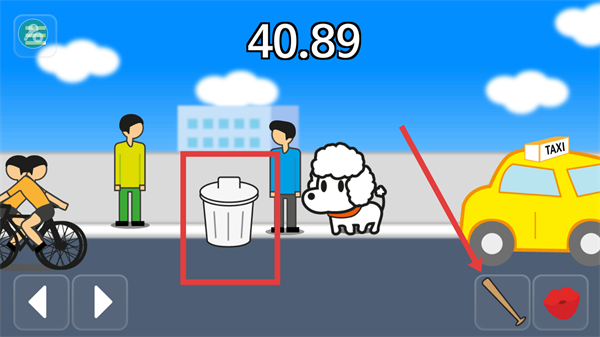 3、找到垃圾桶,點擊棒球棍擊飛垃圾桶。