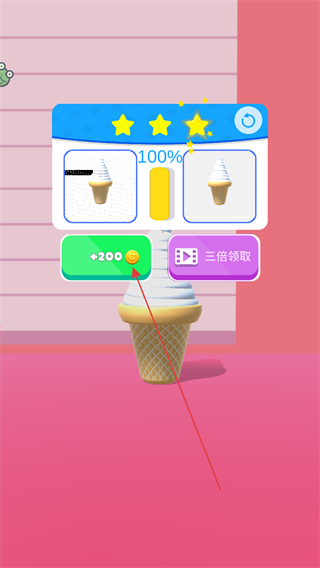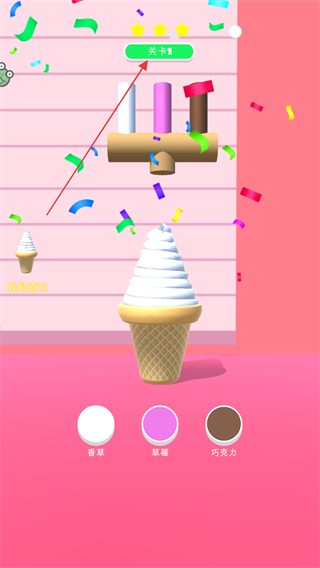 3、完成甜筒制作,出現(xiàn)彩帶特效,關(guān)卡進(jìn)度達(dá)到100%。