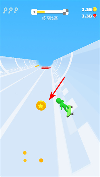 2、在滑行過(guò)程中操控角色移動(dòng)至金幣位置,這是積累資源的基礎(chǔ)操作,接觸金幣后可獲取對(duì)應(yīng)的獎(jiǎng)勵(lì),提升成長(zhǎng)進(jìn)度,助力后續(xù)競(jìng)賽體驗(yàn)。