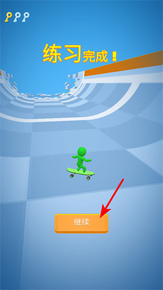 4、練習(xí)比賽完成后點(diǎn)擊繼續(xù)按鈕,這是開(kāi)啟后續(xù)競(jìng)賽內(nèi)容的重要操作,點(diǎn)擊后會(huì)進(jìn)入新的競(jìng)賽流程,持續(xù)參與滑板挑戰(zhàn),積累更多獎(jiǎng)勵(lì)與經(jīng)驗(yàn)。