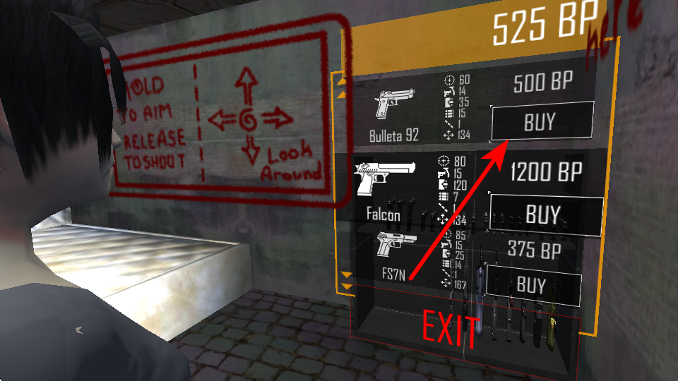 3、在商店界面點(diǎn)擊BUY按鈕購(gòu)買武器,這是強(qiáng)化生存能力的核心操作,獲取武器后可提升自身的戰(zhàn)斗實(shí)力,更好地應(yīng)對(duì)后續(xù)的威脅。