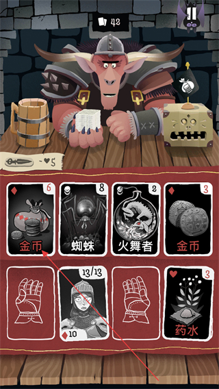 5、極簡的地牢畫風(fēng)搭配沉浸式音效,昏暗的卡牌對戰(zhàn)場景、怪物攻擊的警示音效,營造出緊張刺激的冒險氛圍,讓每一次卡牌出牌都充滿儀式感。