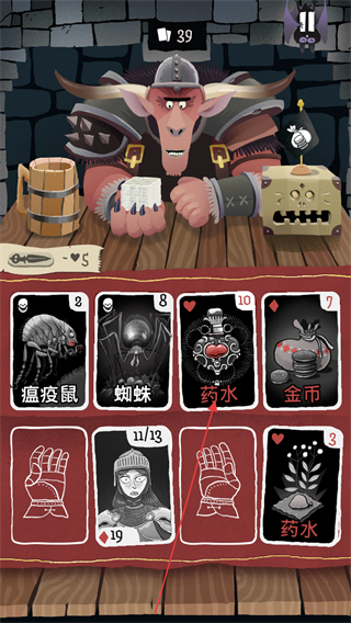 4、使用骰子進(jìn)行判定,獲取新卡牌如藥水增強(qiáng)劑,豐富手牌資源。