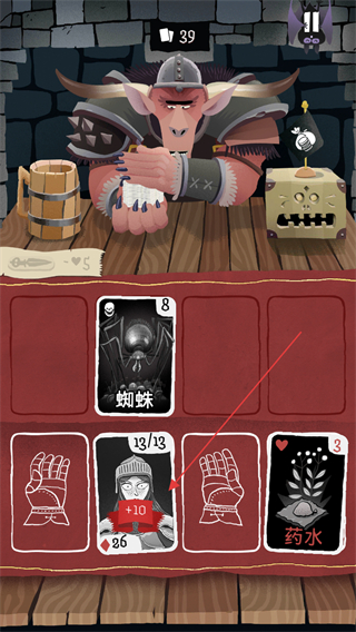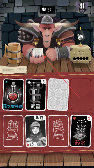 2、使用藥水卡牌,提升對應(yīng)屬性,增強(qiáng)自身狀態(tài),推進(jìn)對戰(zhàn)流程。