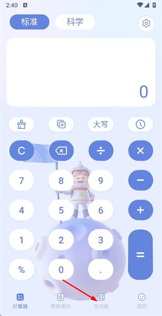 1、在計算器主界面點擊底部的多功能選項,進入多功能頁面。
