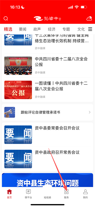 1、在弘資中首頁(yè),點(diǎn)擊底部的服務(wù)選項(xiàng),進(jìn)入服務(wù)頁(yè)面。