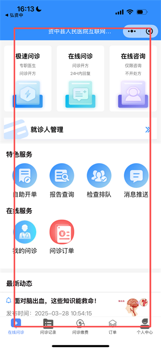 3、在醫(yī)院服務(wù)頁(yè)面,可根據(jù)自身需求使用相應(yīng)的服務(wù)功能。