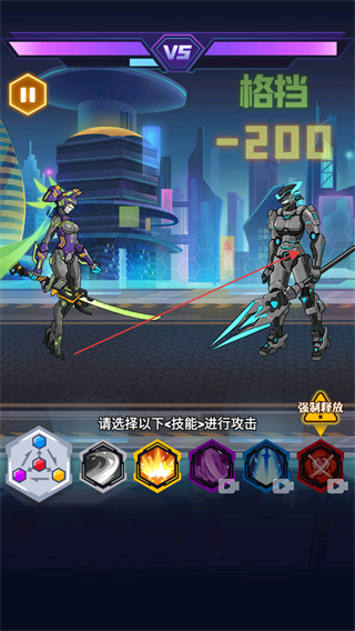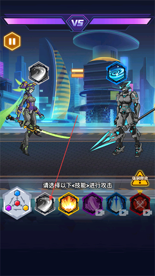 2、對(duì)戰(zhàn)開始后,從下方技能欄選擇技能,向敵方機(jī)甲發(fā)起攻擊。