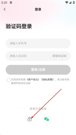 3、在驗(yàn)證碼登錄頁(yè)面,點(diǎn)擊密碼登錄對(duì)應(yīng)的圖標(biāo),切換至密碼登錄界面。