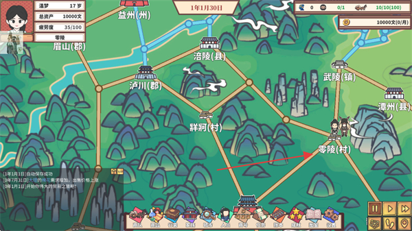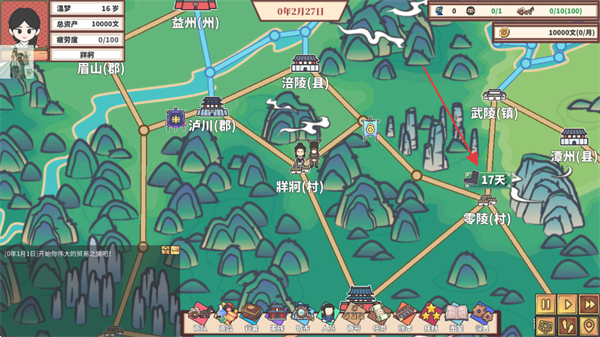 1、打開四海一商游戲,在地圖界面找到下一個地點的移動標識,點擊后前往零陵區(qū)域。