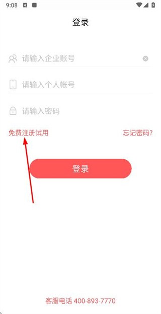 1、在登錄頁(yè)面點(diǎn)擊免費(fèi)注冊(cè)試用,進(jìn)入注冊(cè)的手機(jī)驗(yàn)證頁(yè)面。