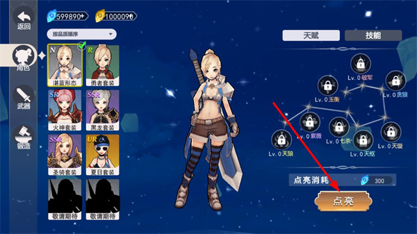 5、進(jìn)入角色界面切換到技能頁,消耗資源點擊點亮按鈕,解鎖對應(yīng)天賦節(jié)點,提升角色屬性與戰(zhàn)斗能力。