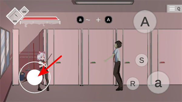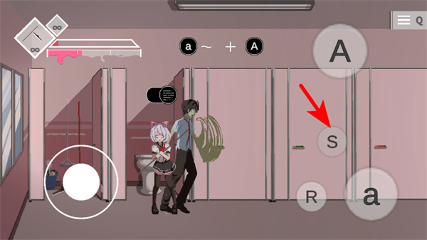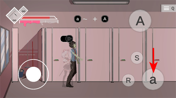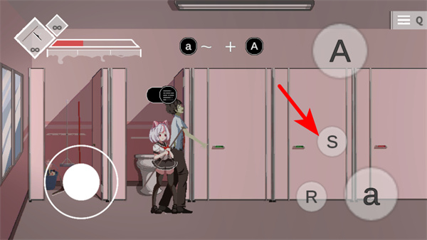 4、重復(fù)操作,通過(guò)虛擬搖桿調(diào)整角色位置,配合a和S等按鈕觸發(fā)互動(dòng),逐步推進(jìn)劇情。