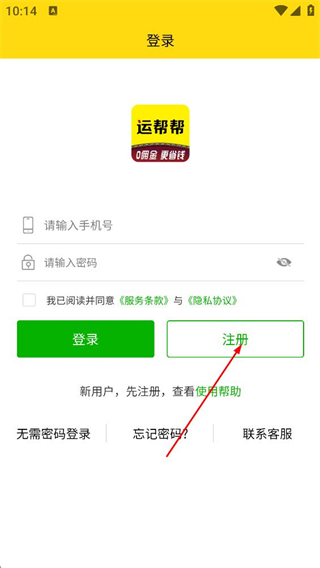 1、在運幫幫登錄頁面,點擊注冊按鈕,進入賬號注冊操作界面。