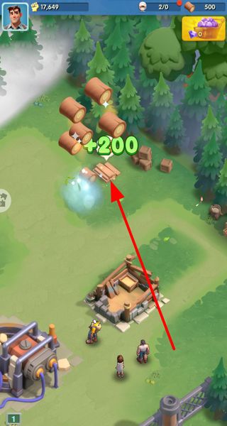 1、點(diǎn)擊場(chǎng)景中收集木材資源,獲取對(duì)應(yīng)的數(shù)量積累物資,為后續(xù)的建造操作做準(zhǔn)備。