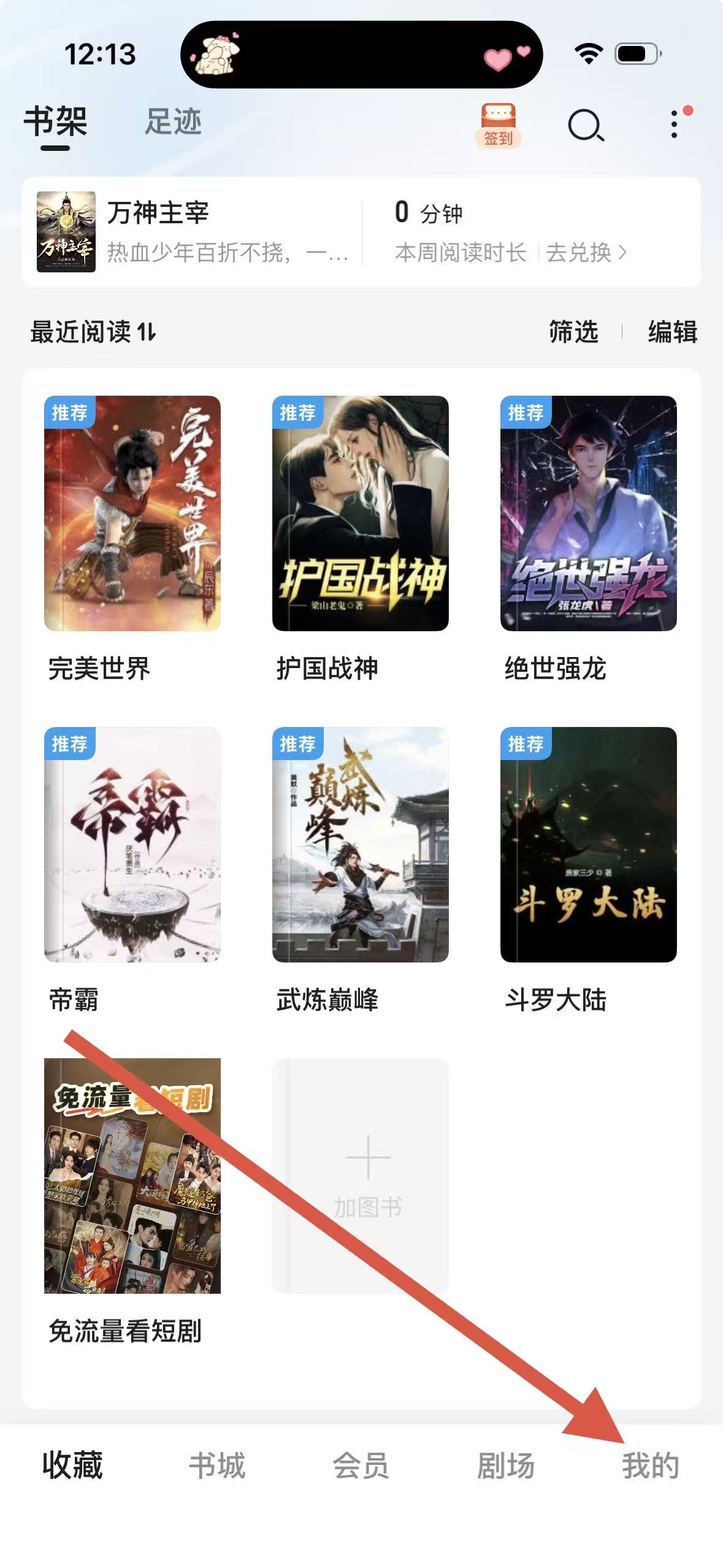 1、打開咪咕閱讀APP進(jìn)入書架界面,點擊底部導(dǎo)航欄中的我的選項。