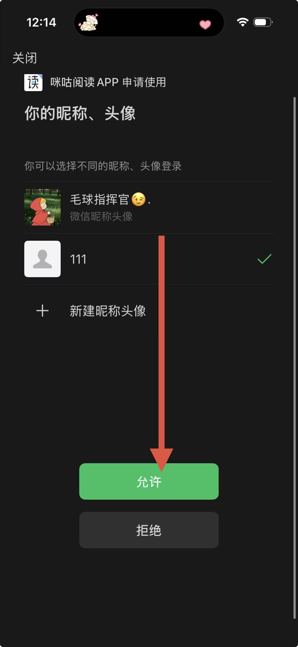 4、選擇相應(yīng)昵稱頭像后點擊允許按鈕,即可完成微信登錄。