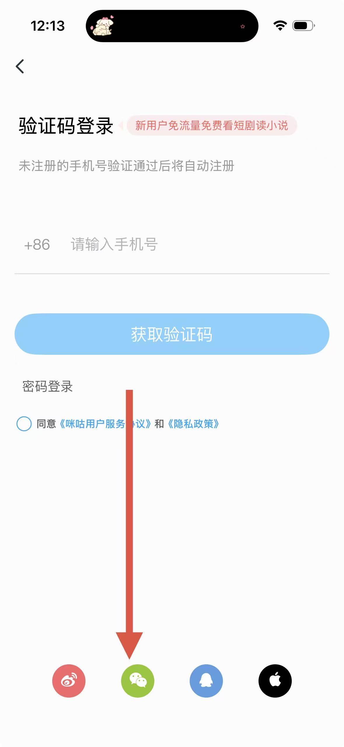 3、在登錄頁面下方,點擊微信圖標(biāo)。