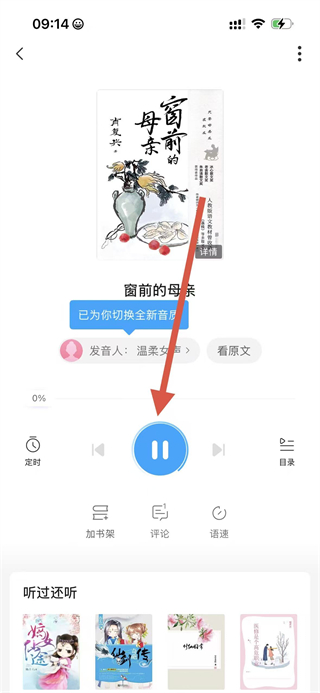 3、在聽書界面,點擊播放按鈕,即可開始收聽書籍內(nèi)容。