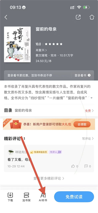 2、在書籍詳情頁面,點擊AI聽書選項,進(jìn)入聽書界面。