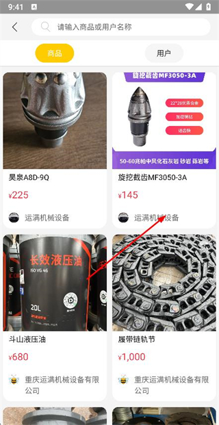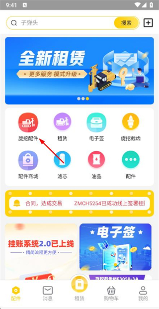 1、在首頁點(diǎn)擊旋挖配件選項(xiàng),進(jìn)入旋挖配件的商品列表頁面。
