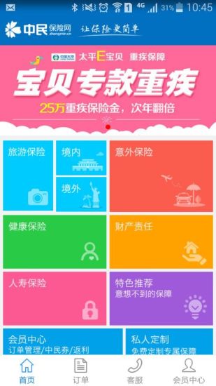 中民網(wǎng)是站在投保人的角度、滿(mǎn)足投保人需求的主動(dòng)型保險(xiǎn)電子商務(wù)平臺(tái),產(chǎn)品豐富、險(xiǎn)種齊全,在線銷(xiāo)售80余家國(guó)內(nèi)外著名保險(xiǎn)公司共1300多種(款) 保險(xiǎn)產(chǎn)品,包括意外險(xiǎn)、旅游險(xiǎn)、家財(cái)險(xiǎn)、健康險(xiǎn)、壽險(xiǎn)、車(chē)險(xiǎn)等。目前已經(jīng)完全實(shí)現(xiàn)這些保險(xiǎn)產(chǎn)品的在線保費(fèi)計(jì)算、對(duì)比、購(gòu)買(mǎi)、支付與投保功能。