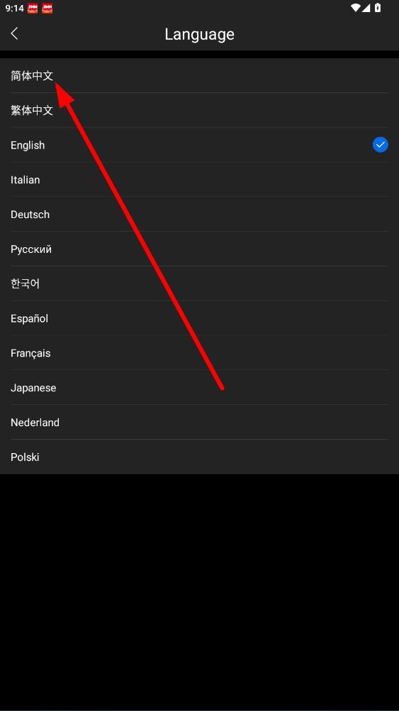 4、在語(yǔ)言選擇頁(yè)面,點(diǎn)擊簡(jiǎn)體中文即可將App語(yǔ)言更換為中文。