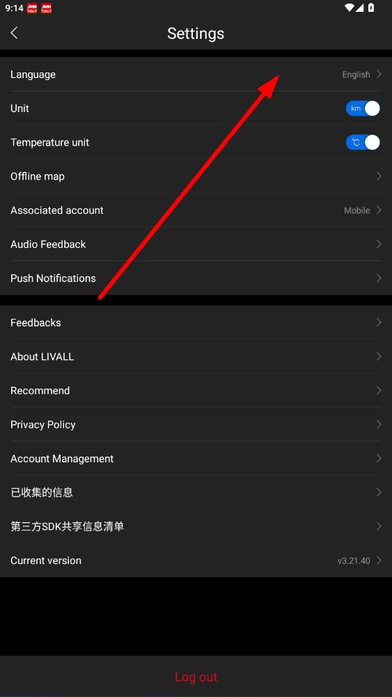 3、在設(shè)置界面里,點(diǎn)擊Language選項(xiàng),進(jìn)入語(yǔ)言選擇頁(yè)面。